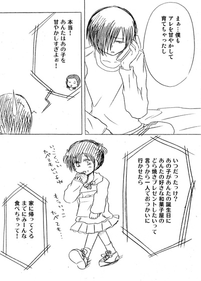 妹ちゃんは甘やかされて育ったので少し我が儘な性格で、大好きなお兄ちゃんを奪い去ってゆく健二さんが大嫌いです