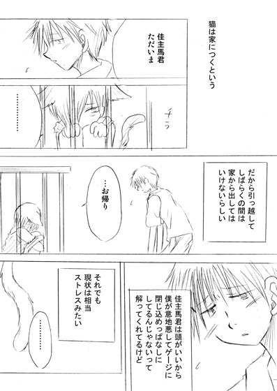 佳主馬が猫耳尻尾のキメラで健二さん(人間)に飼われているという特殊設定です